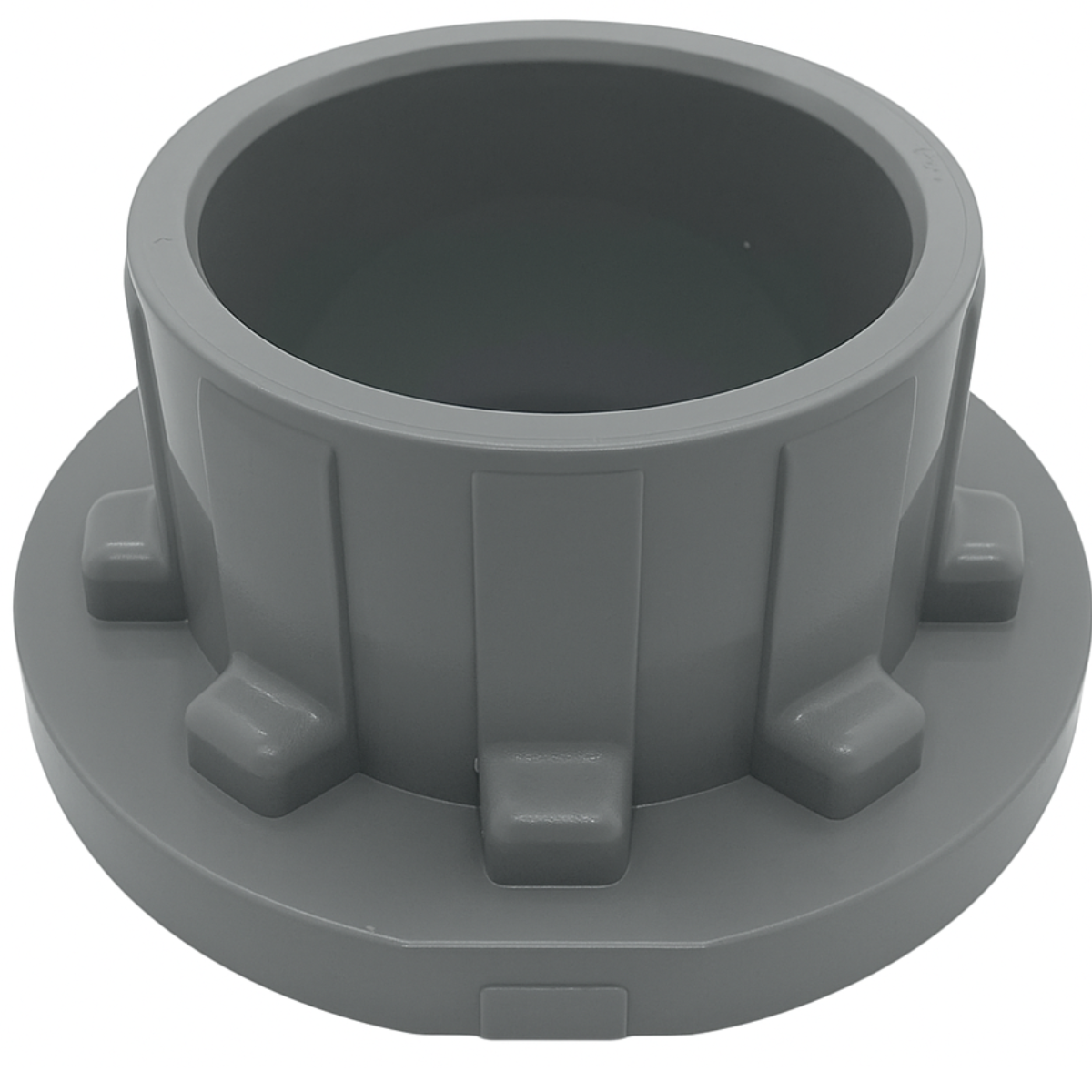 A extremidade com bolsa soldável (fêmea) é projetada para uma união por adesivo químico com tubos de PVC-C, criando uma junta permanente e molecularmente fundida. Mesmo com a ponta soldada à tubulação, o design de colarinho permite que o corpo da válvula de união seja removido para manutenção, combinando a segurança de uma conexão soldada com a praticidade de uma união, algo essencial em tubulações de 2 polegadas.