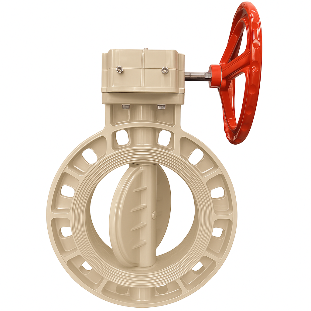 A Válvula Borboleta da Aqua Plastic é a solução ideal para o controle e bloqueio de fluxo em tubulações de grande diâmetro (8" / DN 200). Seu corpo e disco são construídos em PP-H (Polipropileno Homopolímero), um termoplástico de alta performance conhecido por sua excepcional resistência química a uma vasta gama de ácidos, bases e sais, além de uma notável capacidade de operar em temperaturas mais elevadas em comparação ao PVC.